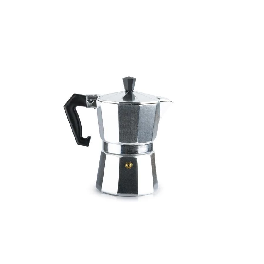 Klasszikus kotyogós alumínium kávéfőző műanyag fekete nyéllel, ami nem veszi át a hőt. 3 csésze kávé elkészítésére alkalmas egy időben.