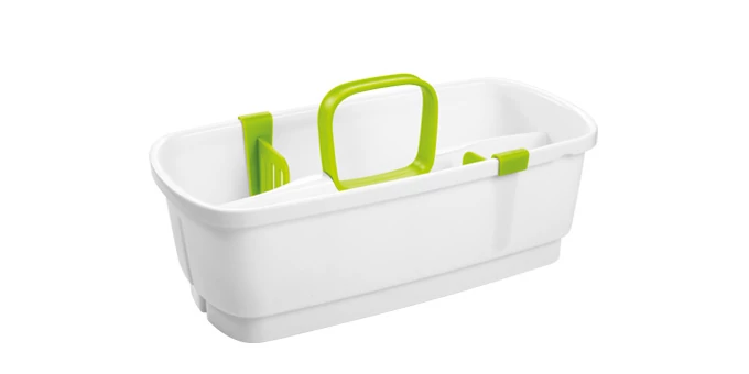 Kiválóan alkalmas a tisztító eszközök helytakarékos, átlátható tárolására a ProfiMATE Takarítóvödörben 12 l (kód 900946). Mozgatható elválasztók a tisztítószerek, huzatok, törlőrongyok, szivacsok és has. elválasztott tárolásához, tágas fogantyú a kényelmes hordozás érdekében. Ellenálló műanyagból készült. 3 év garancia.